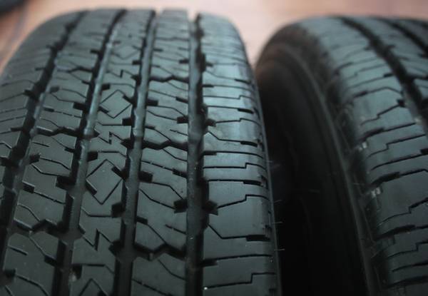 Old tires LT235/85R16. Tracks are about 10-11mm or 12.5/32. Not sure how much life it left. $50 each.