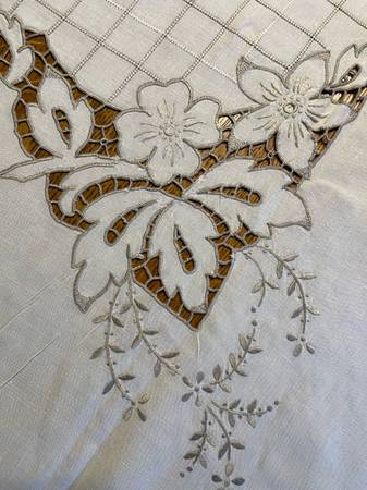 Lovely vintage Madeira style cloth, 64” x 118”.