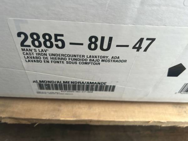 Kohler K-2885-8U-47 Man's Lav Undermount bathroom sink, Almond (not biscuit) finish (Almond is now a discontinued finish, so this is hard to find). Brand new/never used in original retail packaging. This comes as overstock from a retail store closure. If interested, please text or call 2 2 4 - 9 0 0 - 7 6 9 5.