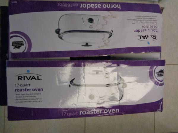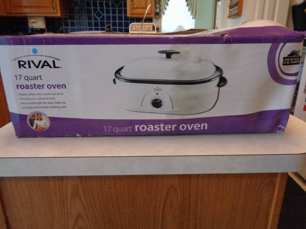 This is a RIVAL Roaster 17 Quart Oven. Model #R0171 and was made in China. Includes instruction book, inner removable roasting pan and rack. Previously owned and in excellent condition, but I can’t say the same for the box. (Please see pix for a complete description) (#5572)