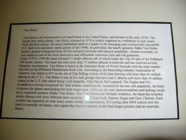 -Signed by Band - EDDIE VAN HALEN, DAVID LEE ROTH, ALEX VAN HALEN, & MICHAEL ANTHONY