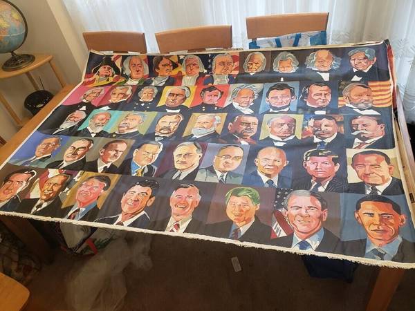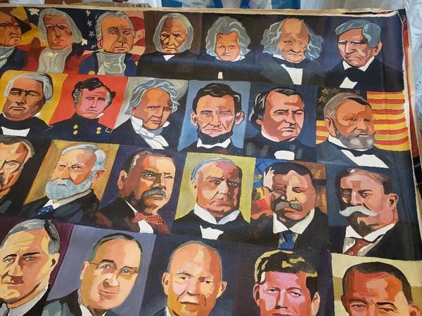 HUGE ACRYLIC PAINTING ON CANVAS - TO BIG TO PUT FRAME ON IT FEDEX/UPS WONT TAKE IT THAT BIG - IT WILL ARRIVE ROLLED UP AND IN BOX 45 US PRESIDENTS - UP TO PRESIDENT OBAMA. SIZE 72X49 any questions...