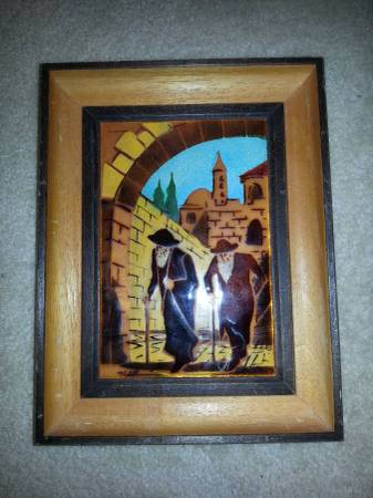 1. SIGNED ENAMEL ON COPPER ISRAEL JUDAICA PAINTING Dimensions: Frame size is 7 1/2" by 9 1/2" - The inside opening is 4 1/2" by 6 3/4" Description: Signed enamel on copper, Jerusalem scene near...