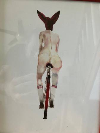 Framed David Choe 'Nude on a Bicycle' - 9 x 12 - arts & crafts - by...