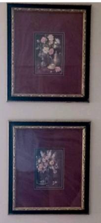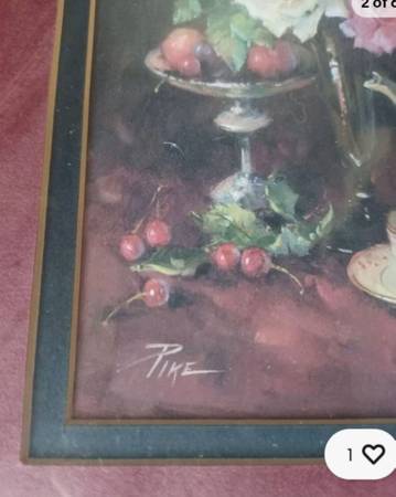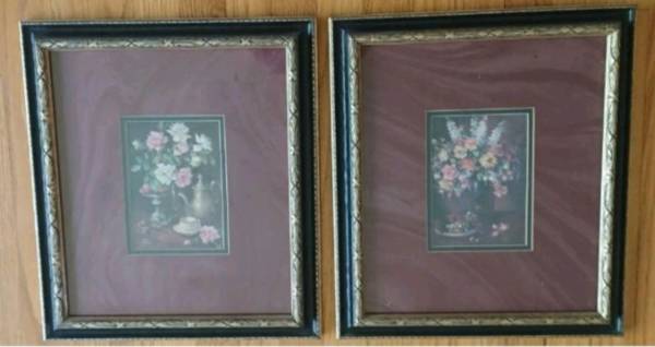 Pair of Framed Floral Prints Signed Pike - Rose Bouquet in a Vase and Still Life Art, in beautiful Wooden Frames. This pair of art prints would be a great addition to an office or dining room. Frame...