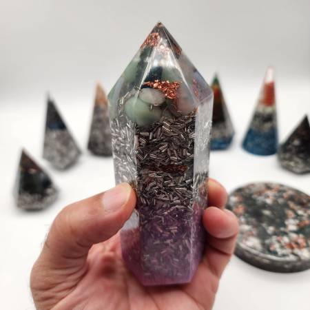 Derived from 'Orgone,' a term coined by Wilhelm Reich for the universal life force, Orgonite serves as a self-sustaining energy transmutation tool, converting negative life energy into positive vitality.