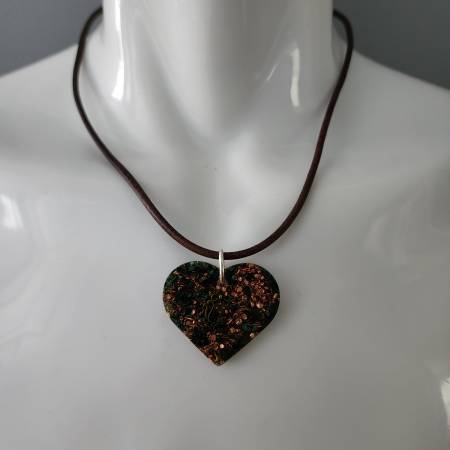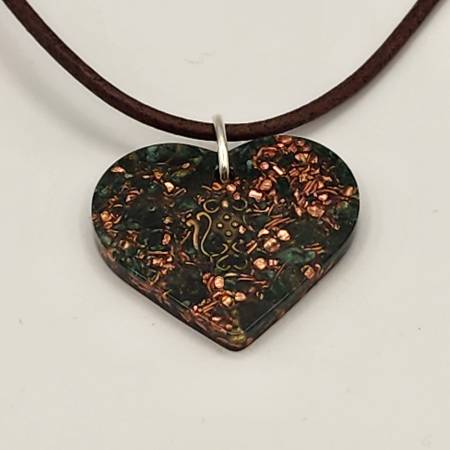 Heart Orgonite Pendant with Fuchsite & Hidden Key – EMF Protection Jewelry – One of a Kind Functional Energy Art