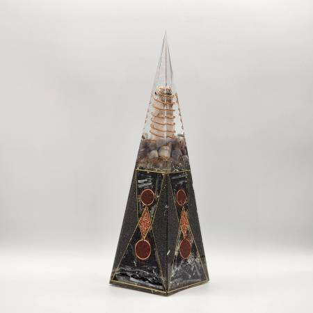 XL Orgonite Pyramid EMF Protection – One of a Kind Energy Tower with Moonstone, Shungite, Selenite, Agate & Copper Coil