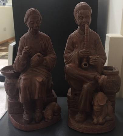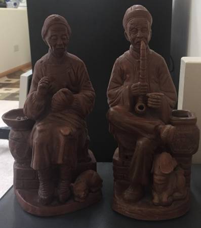 Vintage purple clay figurines, Asian / Oriental Couple, Collectible, measures about 9.5 inches in height. In excellent condition $20 Cash, Pick up only