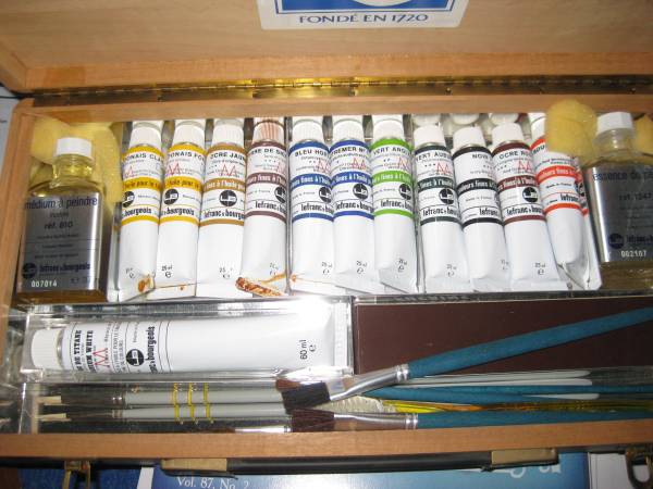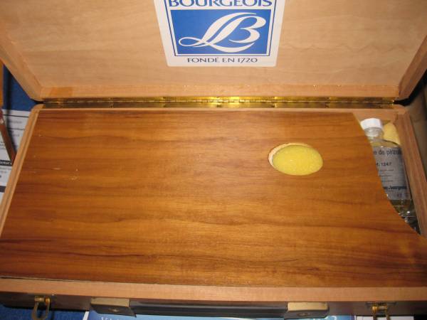 Wood Paint Box - Never Used - Full Kit Contains: Pallette Paints Brushes - various sizes Perfect gift for your budding artist or painter on-the-go Wood box in pristine condition Phone calls ONLY...