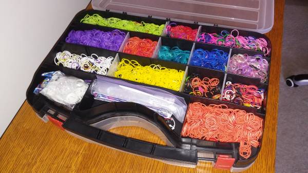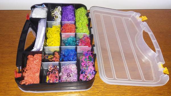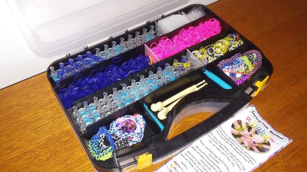 Rainbow bands set in two sided case with tons of rubber bands, tools, and manual. Can make all sorts of rings, bracelets, etc.
