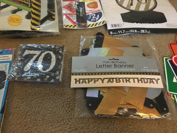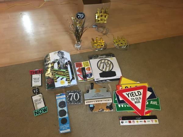 This all the decorations needed for a party for someone turning 70. You get everything in the photos. The walker inflates and does work. I accept cash and will meet near Vernon Hills. Thank you