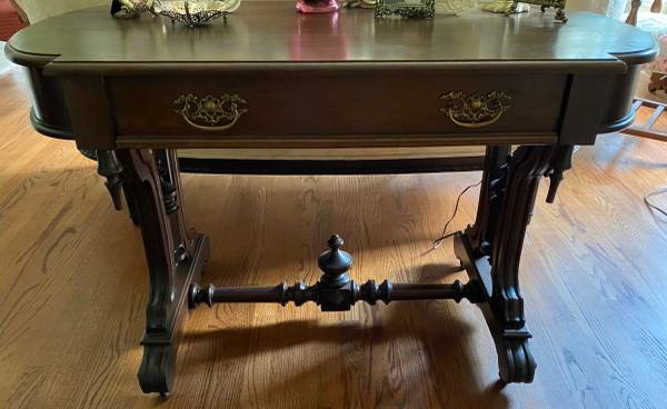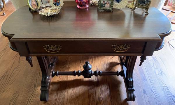 My mother bought this many years ago, but we are downsizing so it has to go. Excellent condition. Nothing broken or chipped. Style is from 1880s and it may be that old, just don't know. Has a large drawer. This looks good from all sides. To come see, call or text John @ 847-915-022 thre e e. Deliver is negotiable. I've a van that can move it, but buyer must come see it, pay for it and help load and unload. No scammers - I've seen it all and can play the game too.
