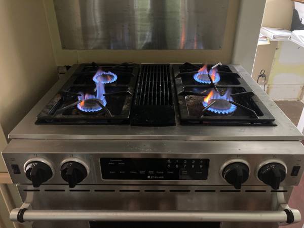 Stainless steel-Stove burners all work-never had an issue-cooks great! oven works but needs control panel or some repair-not sure-so the oven is currently NOT working-have a brand new oven coil...