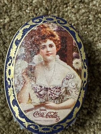 Third Coke-Cola Bristolware Cameo tin size 3.38x2.38x1.38 Cameo Blue Gold trim Tin