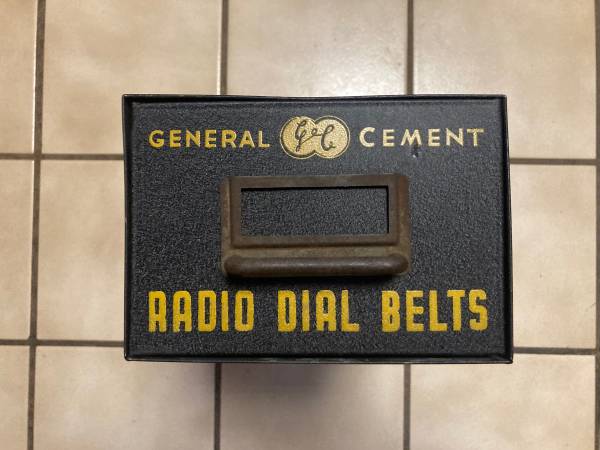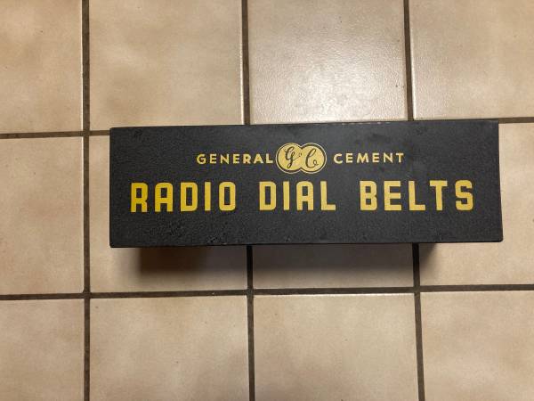 Vintage General Cement Radio Dial Belts Cabinet Drawer Advertising TV Tubes •About 14 5/8 “ long x 6 1/8” wide x 4 1/4" tall •Shows normal wear from age, but is in good overall condition. Asking...
