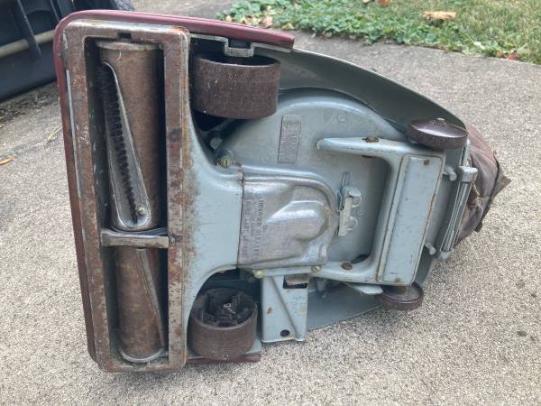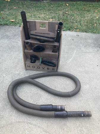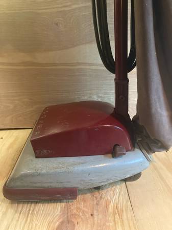 Hoover Model 29 ,serial # A5219700 ,with attachments included ,allegedly the Holy Grail of Hoover vacuums ,this was originally purchased brand new by my mother (now deceased) in the 1950’s ,she left it to me ,it’s been in my storage unit for way too long ,and I no longer want it ,a little past history on this vacuum : I do remember she had it fixed a couple of times by a vacuum repair shop in Villa Park ,Illinois ,and I also remember they once replaced the on/off switch ,and the power cord ,all other repairs I don’t recall what was done ,probably just some typical routine belt replacements ,it does run/work (kinda loud) ,unfortunately the headlight doesn’t work ,may just be a bulb ,don’t know ? it has some wear from being over 70 years old ,my mother used this vacuum every week for over thirty years ,I used it for around four years ,till I bought a house with all tile and hardwood floors ,it then went into storage ,the handle is showing the most wear ,it’s worn thru the maroon paint ,and is showing bare metal ,as pictured ,the extension hose ,and all the attachments/organizer box are original and included in this auction ,also ,may I add ,the extension hose does connect properly as designed ,all accessories and/or attachments are in original excellent condition ,they were all purchased at the same time as when the vacuum cleaner was purchased ,not later ,the Crevice Tool is heavily worn out and scratched up ,see attached pictures for a close up ,the Hoover bag is pretty washed out ,but 100% original from the 1950’s (never replaced) ,email me with any questions ,thanks .I’m also including in this auction ,a bag of three genuine paper Hoover replacement bags purchased in 1991 .$425.00 obo