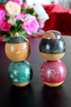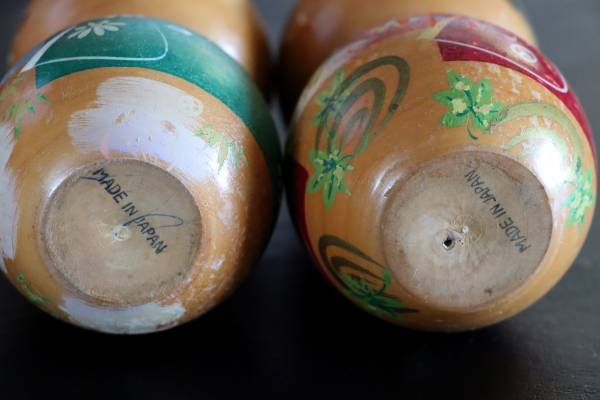 Antique Japanese souvenir wooden dolls - hand painted
