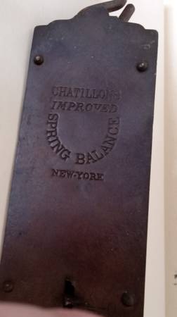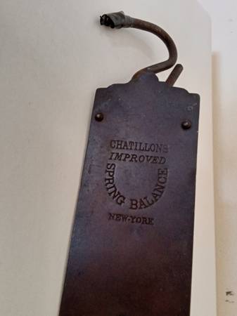 Chatillons Improved Spring Balance Metal Scale NY 11" Antique 1891 11" Long x 2.5" Wide x 1.5" Deep Vintage/Antique 1891 Spring Scale Hanging hooks included Made in USA