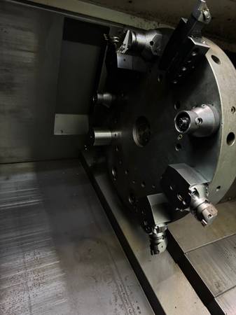 Perfect for precision work with its 40" swing and 41" machining length. Accommodates 18" chuck and has 4" bar capacity. With 2 axis control and 55 hp power, it achieves a maximum RPM of 2,400. It includes an 18" SMW Autoblok Quick Change Chuck and a variety of tooling. Manufactured in 2001, this machine has plenty to offer for your operations. This model also has a tailstock.