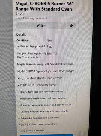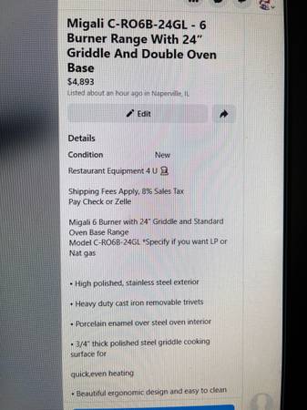 Pay using Zelle, check in advance-clearance time. IL Sales tax 8 %