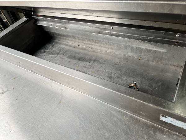 The top, sides, and ends are constructed of durable and easy-to-clean 18-gauge stainless steel. It features a generous work surface in front of the pan holding compartment, with removable, hinged stainless steel covers.