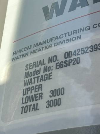 NEW RHEEM WATER HEATER MODEL RHEEM EGSP20 INTERESTED CALL. THANKS