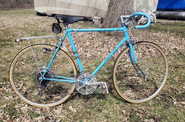 This is my 1972 24" Schwinn Sport Tourer in Opaque Blue #834-9 Chromoly Frame that I purchased on 4/14/1972 at Glenview Bicycle sales. This is in Excellent overall condition & everything works as is should...it has an optional generator to power the Bright Fluorescent Headlight & Rear Rack...it's has been in storage covered up the majority of its life as the Original tires will reflect. There's a photo of the only significant marks on the left fork. I have the original receipt & owners manual. Original tires aired up & hold air! The Sport Tourer & Paramount Bikes were the only two hand built bikes at the Chicago Schwinn Factory. Come give her a ride!