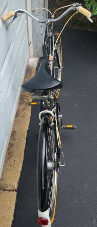 "Excellent Condition" One owner, Sears made in Austria 3 Speed Comfort Bike, 21" step through frame, Fichtel & Sachs rear internal gear hub and shifter, gum walled 26 x 1 3/8 tires, chrome is in excellent shape, awesome 1960's graphics, front and rear alloy caliper hand brakes, alloy kickstand. Tuned and Ready to Ride. Located in Marengo, 60152