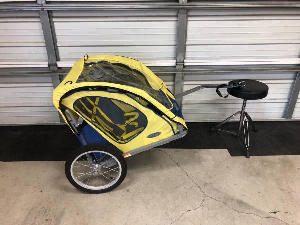 $150 Instep bike Trailer Has Everything to hookup to your bike has Rain Shield Bug shield Folds up for storage 100lbs max yellow/Blue