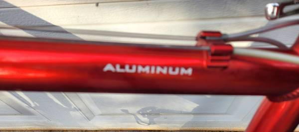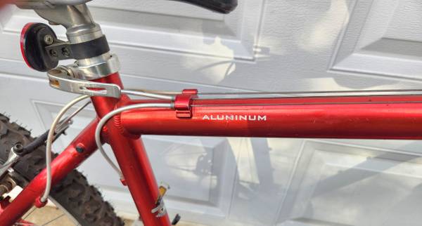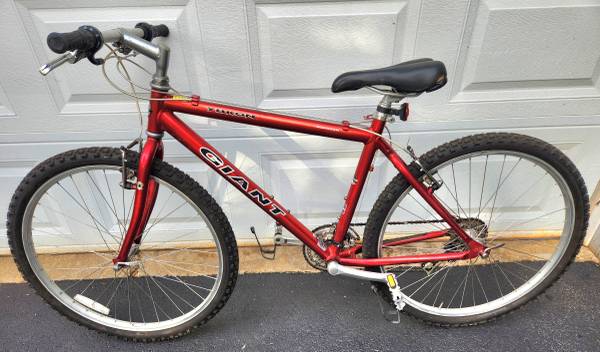 "Like New" Giant Yukon, 6061 aluminum 17.5" frame, cro-moly fork, 21 speeds, twist grip shifters, quick release alloy rims, 3 piece crank set, front and rear "V" hand brakes, quick release alloy seat post. Metallic Red in color. Tuned and Ready To Ride. Located in Marengo 60152