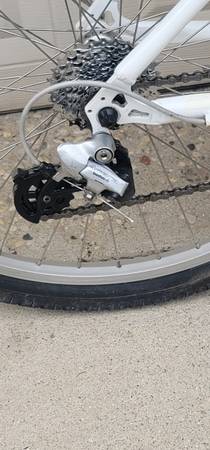Used Giant Sedona comfort bike in good condition. White and silver 17 inch aluminum frame, ideal for rider between 5 feet 6 inches and 5 feet 8 inches. 24 speeds, 26 inch aluminum quick release wheels, RST front suspension fork, quick release suspension seat post, comfort saddle, Shimano front and rear derailers. All gears, derailers, shifters and brakes are fully functional and operational. Includes kickstand and water bottle holder. Includes new Shimano chain and rear wheel cassette. Asking $165.00. Located in Palatine (53 and Northwest Highway). If interested please call at show contact info
