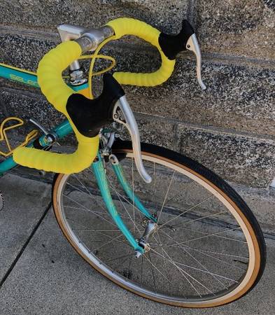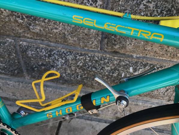 Shogun Selectra 12-speed time trial road bike. Bike in very good condition. Tuned up and ready to ride. Features include: 17" frame, Shimano light-action 12-speed gear system with downtube shifters, front and rear aluminum quick release wheels, water bottle cage, new handlbar padded tape, Specialized leather saddle. Note: Front tire size is 24" and rear tire is 27".