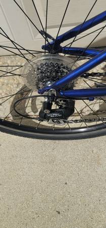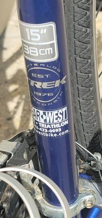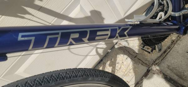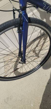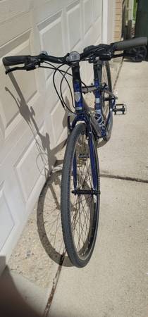 Used Trek 7.2 FX commuter bike in good condition. Blue15 inch Alpha aluminum frame, ideal for rider between 5 feet 3 inches and 5 feet 5 inch. 24 speeds, Matrix 700C aluminum double wall quick release wheels, Bontrager hybrid tires, Bontrager saddle, Shimano EF50 thumb shifters, Shimano front and rear derailers. All shifters, gears, derailers, brakes and components are fully functional and operational. Includes kickstand and water bottle holder. Asking $225.00 cash only. Located in Palatine (53 and Northwest Highway). If interested please call at show contact info
