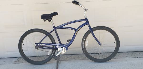 Used Trek Cruiser Classic bike in fair condition as the frame shows wear from use. 19 inch blue color Alpha Aluminum frame, ideal for rider between 5 feet 9 inches sand 6 feet. Single speed with coaster brake, aluminum 26 inch wheels, Bontrager Cruizer tires. The bike is fully functional and operational. Includes kickstand. Asking $125.00. Located in Palatine (53 and Northwest Highway). If interested, please call at show contact info