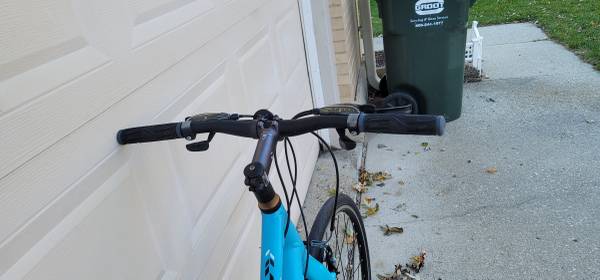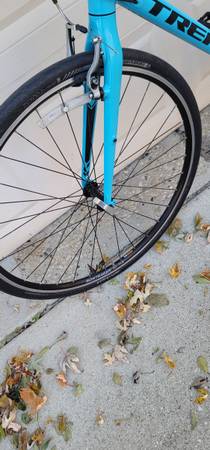 Used women's Trek FX3 commuter Bike in good condition. Blue 20 inch Alpha aluminum frame, ideal for rider 5 feet 9 inches to 6 feet . 27 speeds, 700C aluminum Bontrager TLR quick release wheels, Shimano front derailer and rear derailers. All gears, shifters, brakes and derailers are fully functional and operational. Newly installed chain, front derailer, pedals and grips. Includes kickstand and water bottle holder. Asking $255.00. Located in Palatine (53 and Northwest Highway). If interested please call at show contact info