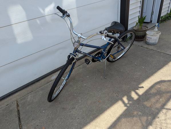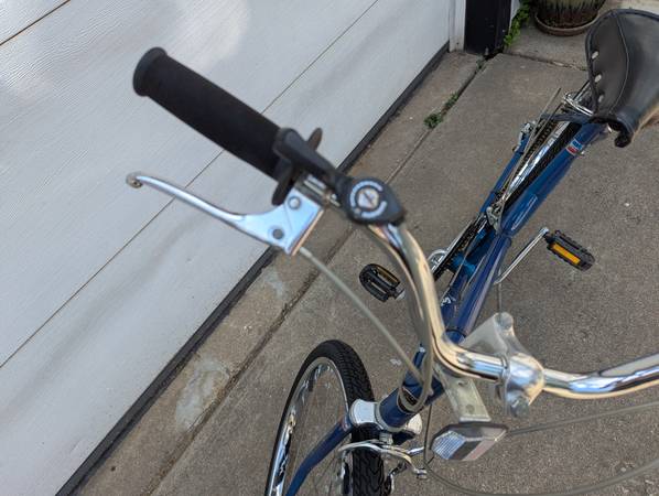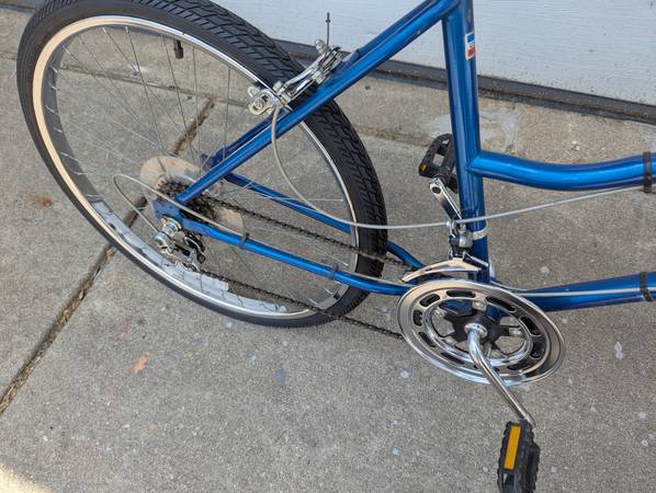 Metallic Blue Frame, with Chrome Rims, Sprocket, and Handlebars. Shimano Brakes. Brand New Tires and Tubes! Used and in very good condition. Very good brakes, shifts nice and smooth! Very clean and ready to ride!!! 👍