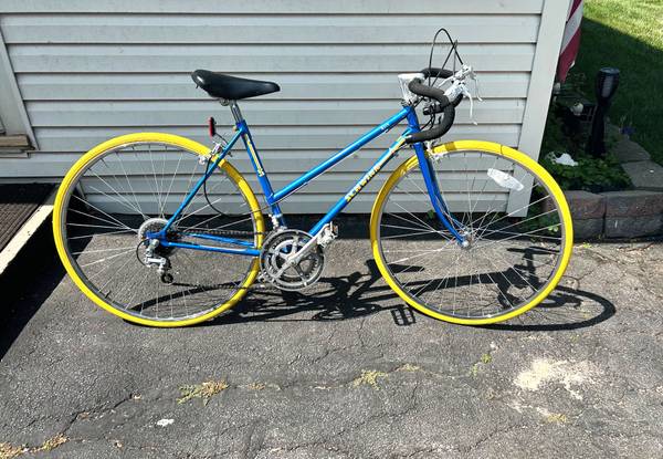 27'' yellow color 27'' tires chrome wheels kick stand 19.5'' frame 10 speed stem shifters brake levers good seat cash n carry $99 firm no delivery