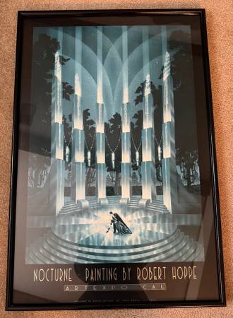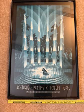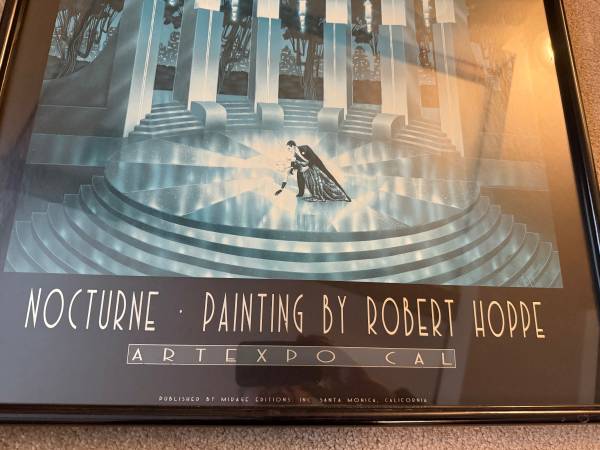 This is a framed poster of "Nocturne," a painting by Robert Hoppe, created in 1987. Key information includes: