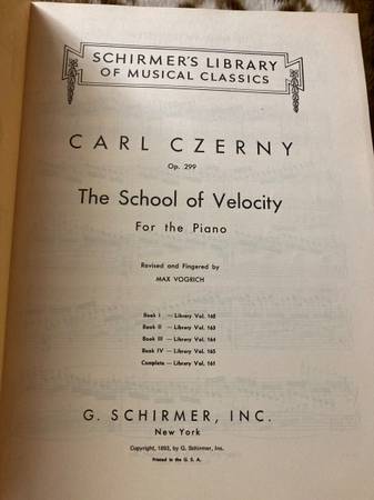 1. Czerny Op. 299, The School of Velocity - Complete - VG and Like New conditions (2 are available) - $11 and $13, respectively 2. Bach: French Suites for the Piano, Vol. 19 - Like New condition -...