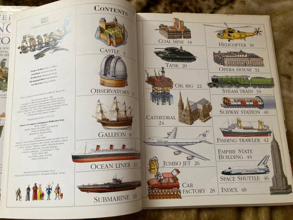 This picture book shows readers what goes on inside 18 of the world's largest buildings and machines. Each illustration is based on the actual plans or architects' drawings so that readers know they are looking inside real structures - not a figment of some artist's imagination. Two of these illustrations are printed on fold-out pages which are a yard wide. Packed around the cross-sections are facts about each diagram which include a medieval castle, a galleon, a coal mine, helicopter, steam train and space shuttle.