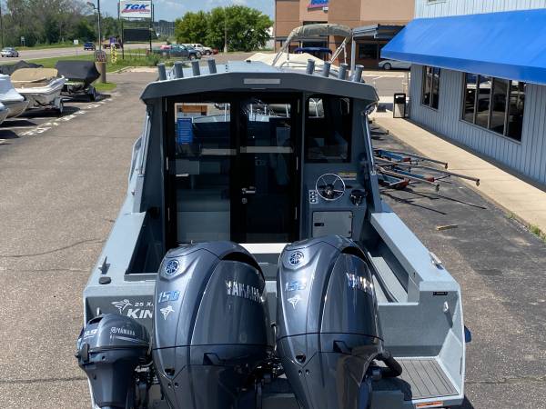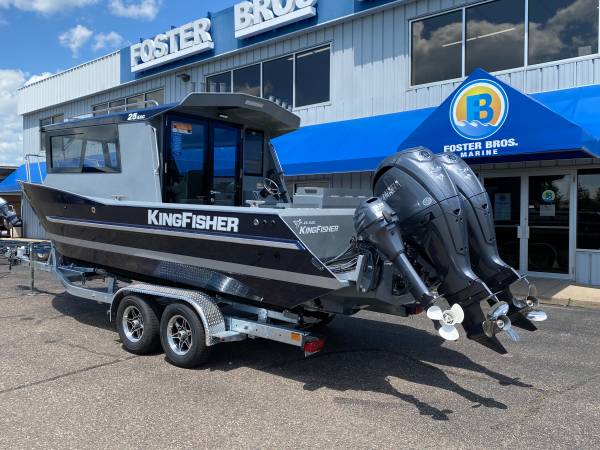 This boat is powered by twin Yamaha 150hp DEC motors and a 9.9hp kicker.