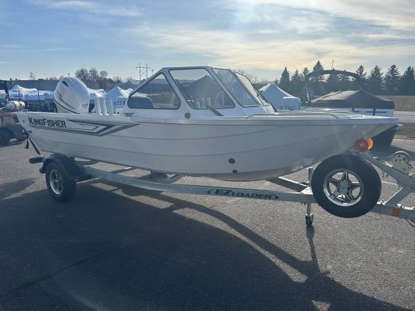 This boat is powered by a 115hp Yamaha motor and sits on a EZ-Loader trailer.