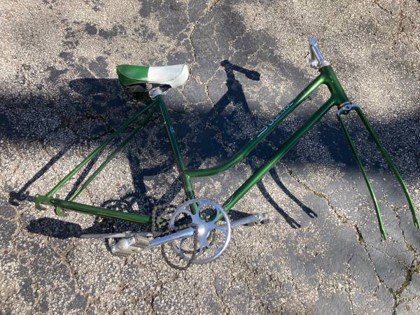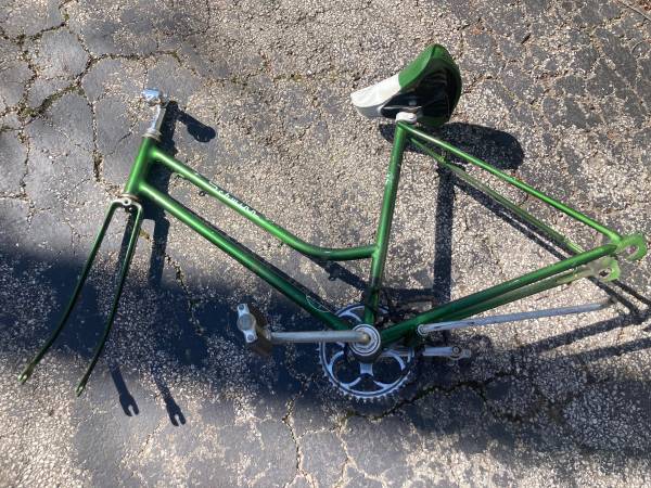 For Sale Women’s Schwinn Bicycle Frame what you see is what’s included 19” frame with peddles and original seat. Great Project! Update I may have found the rear wheel and fenders I’ll throw in....