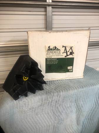 $50 Yosemite Bicycle Trainer Brand New in the box only have one Front Wheel stand to hold the front wheel while riding in the home.