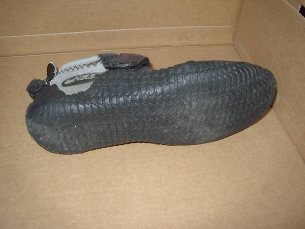 NRS Wetsuit / Drysuit Bootie, Size 10, Right Foot*. I loved my first pair of NRS booties which served me very well for over a decade before I lost one. This is the remaining right foot of the pair. It still is in good condition with good tread left. I wore this on bare feet, with wetsuits, and over drysuit booties to protect the Gore-Tex. It is comfortable and worked well in all ways I used it. I figured I might as well list in case someone needed just the right foot.