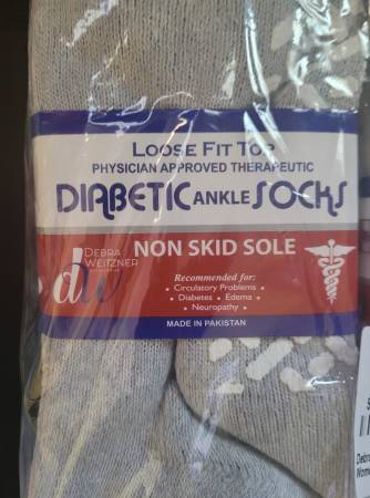 I have 2 unopened bags of ankle high diabetic socks, 6 pr in each bag. $5 a bag TEXT only non-skid sole