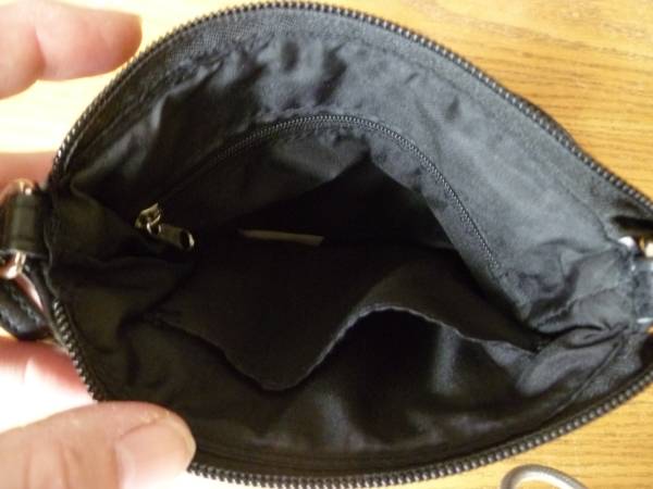 Like new. Adjustable strap. Zippered front pocket. Zippered main compartment. Small zippered pocket inside main compartment. Approximately 6 1/2" x 8".