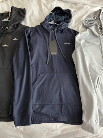 Selling 3 pairs of Primo Golf lightweight hoodies in 3 color ways in a large. Light grey, navy and black. Made a blind purchase awhile back not knowing how it will fit. The fit is more fitted to my liking. Hoodies are brand new with tags. Asking price is $80 and cash only please.