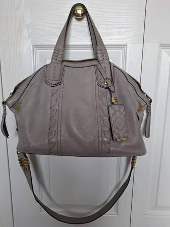 100% Fine Leather Color: Gray Size: 12"H 14"L 5"W Solid Brass Hardware Carrying Handles & Detachable Shoulder Strap 3 Zippered Compartments & 2 Unzippered Compartments Matching Dust Pouch...